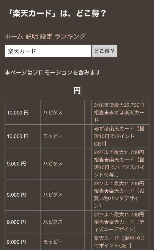 ポイ活する時は一度「どこ得」で検索してみてね