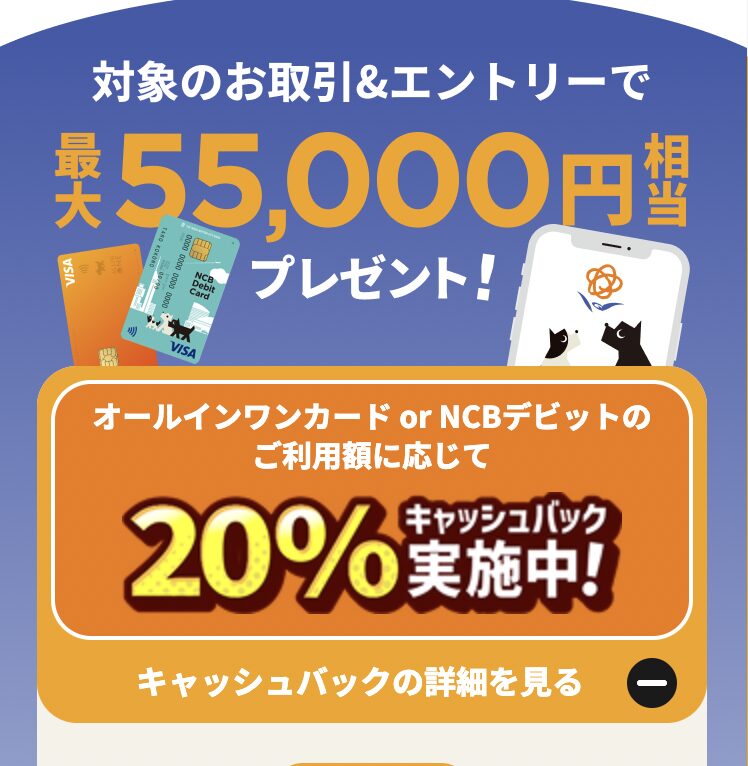 • 内容: 対象カードの利用額に応じて20%キャッシュバック