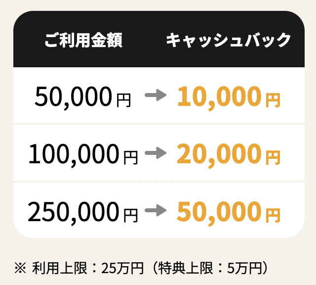 【5万円還元】25万使ったら5万もらえるキャンペーン
